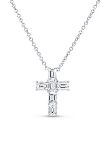 Elegant Cross with Emerald Cut Diamonds Necklace