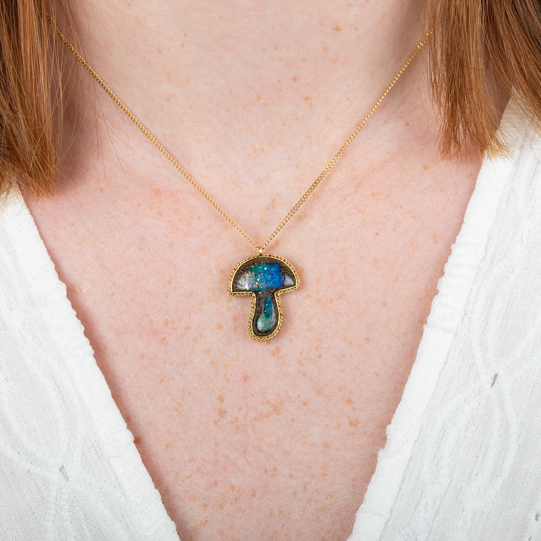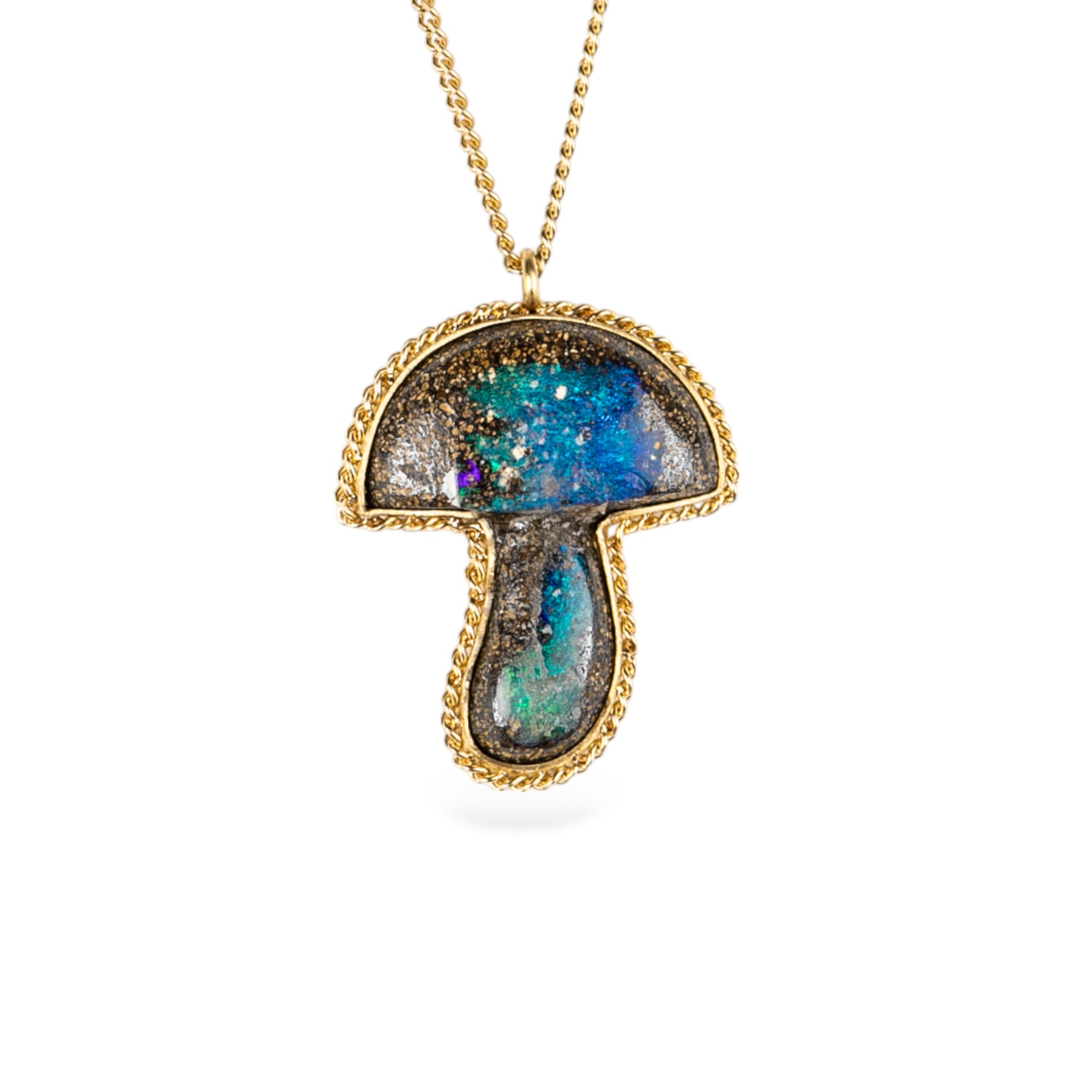 18K yellow gold pendant featuring an Australian opal in the shape of a mushroom.