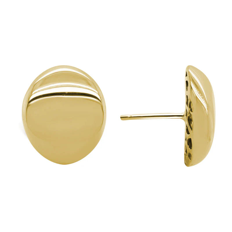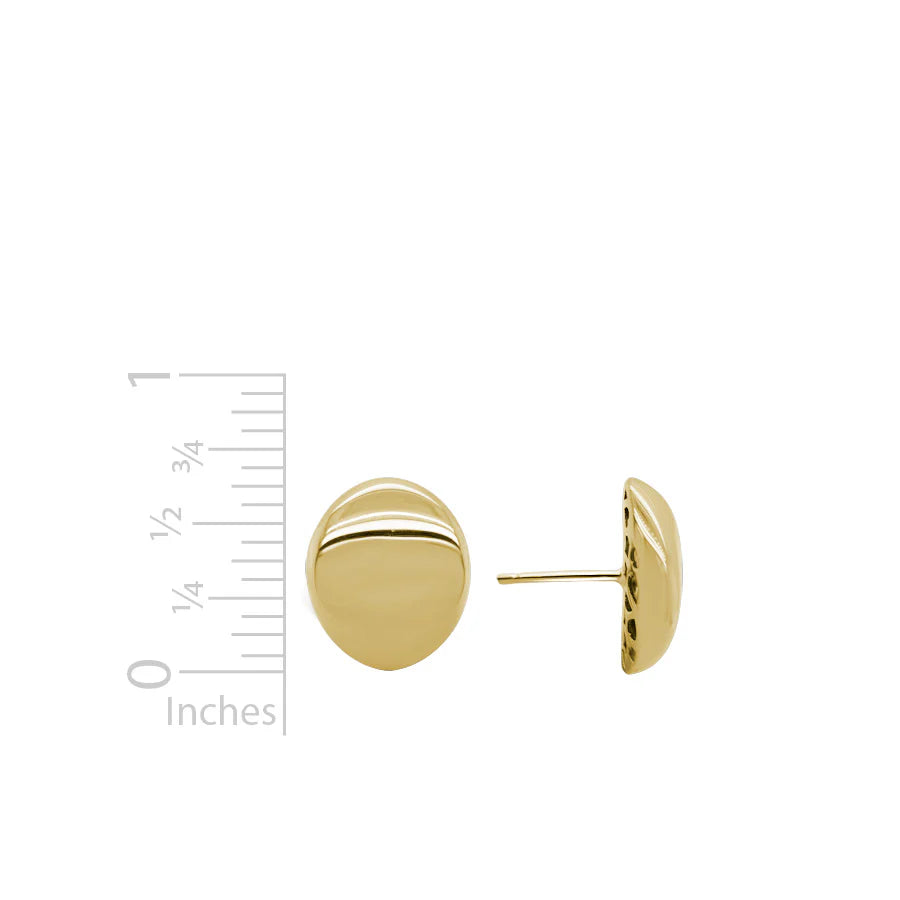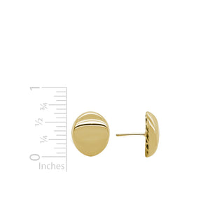 14K yellow gold earrings with a silky high polish finish. Low dome button style design.